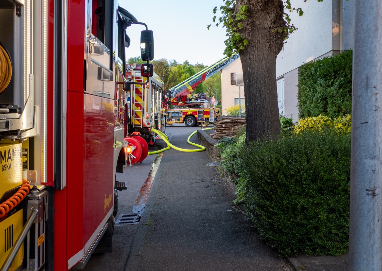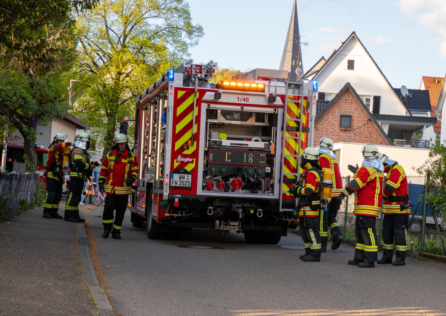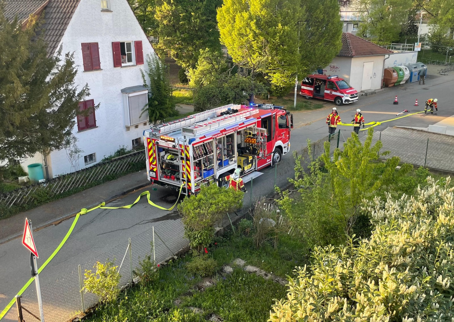 Am Montag, den 20. April 2026, führte der Zug 2 der Feuerwehr Remshalden gemeinsam mit der Feuerwehr Weinstadt eine Einsatzübung mit dem Szenario „Wohnungsbrand im 1. Obergeschoss“ durch.