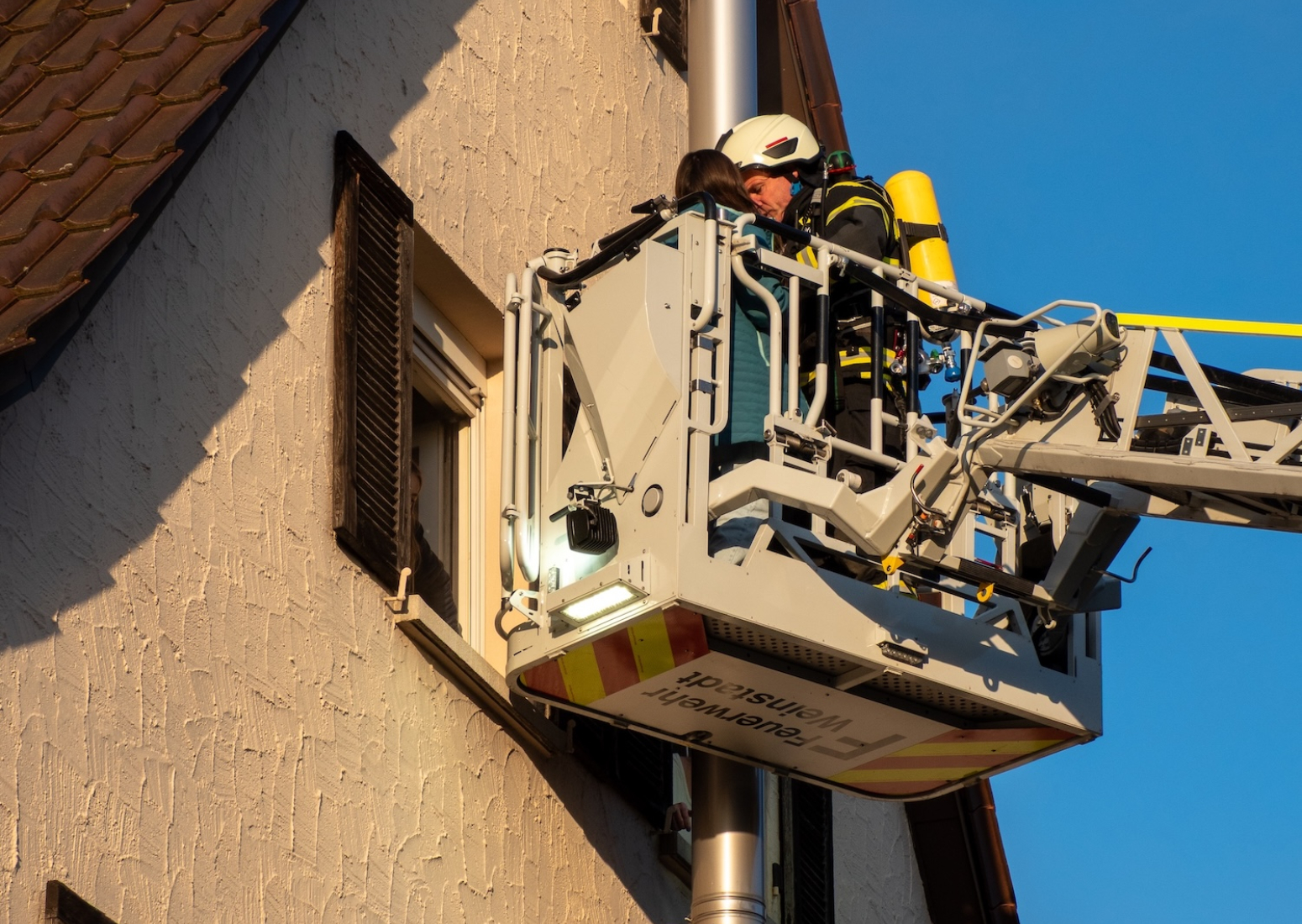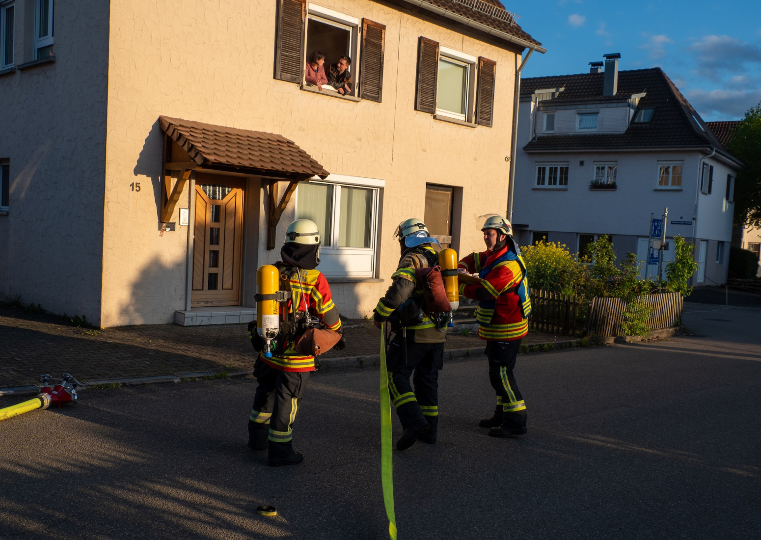 Im Verlauf der Übung konnten insgesamt vier Erwachsene, zwei Kinder sowie zwei Übungspuppen erfolgreich aus dem Gebäude gerettet werden. Die Rettungsmaßnahmen umfassten unter anderem den Einsatz der Drehleiter zur Personenrettung über den Balkon, eine Crashrettung aus dem Innenangriff sowie die Nutzung von Fluchthauben zum sicheren Transport der betroffenen Personen durch den verrauchten Treppenraum.