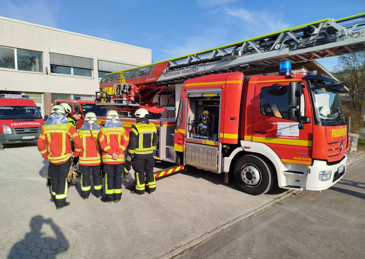 Unsere Kameraden aus Weinstadt waren zusätzlich mit ihrer Drehleiter vor Ort und zeigten die Besonderheiten dieses Fahrzeugs bei der Menschenrettung aus hohen Gebäuden sowie aus Gruben oder Schächten.