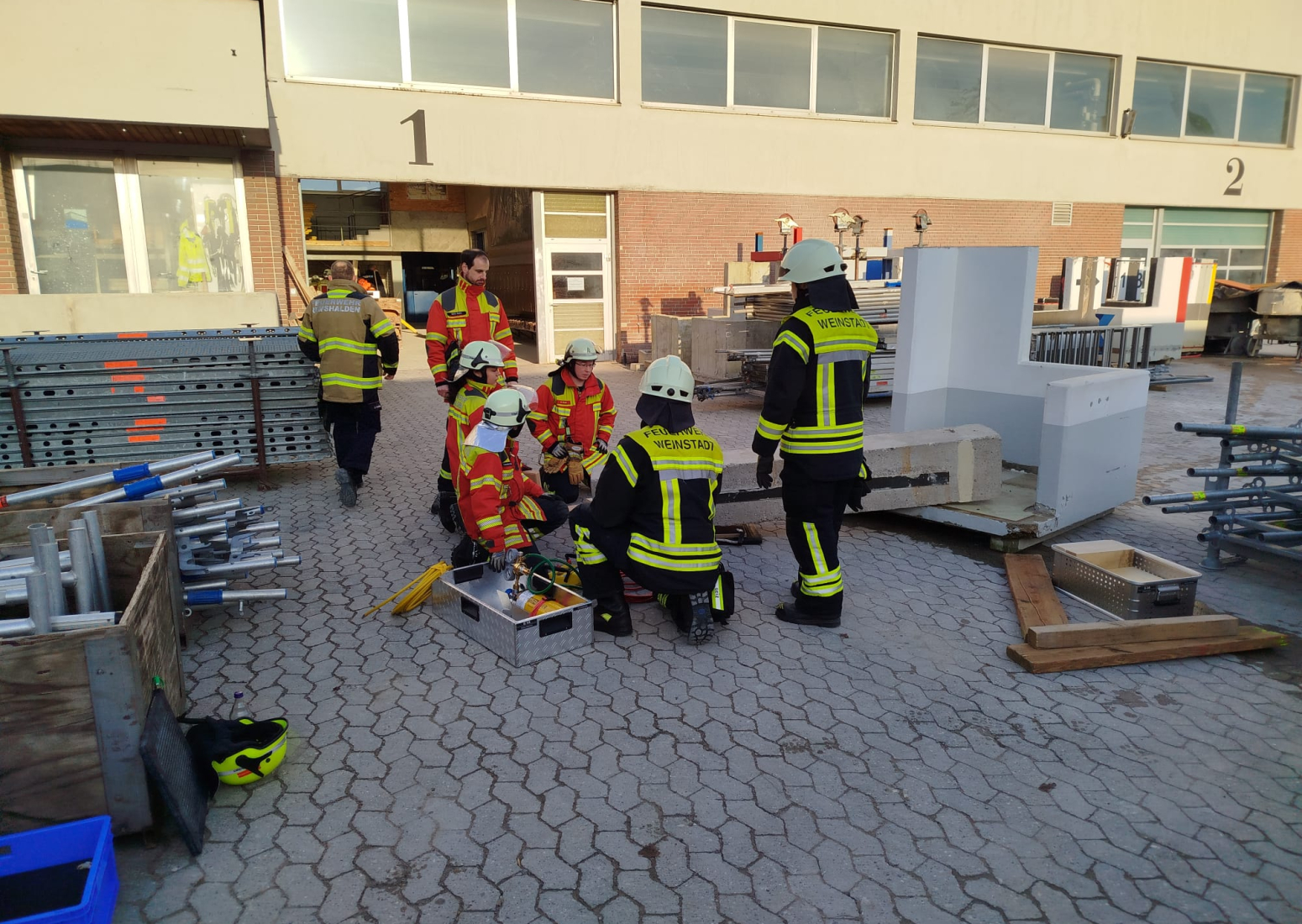 Im Zuge der Truppführerausbildung, die momentan in Remshalden zusammen mit der Feuerwehr Weinstadt stattfindet, wurde letzten Samstag das taktische Vorgehen bei TH-Einsätzen an verschiedenen Stationen auf dem Gelände der Bauschule in Geradstetten beübt.