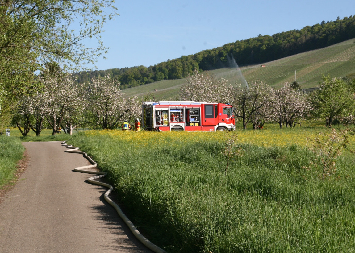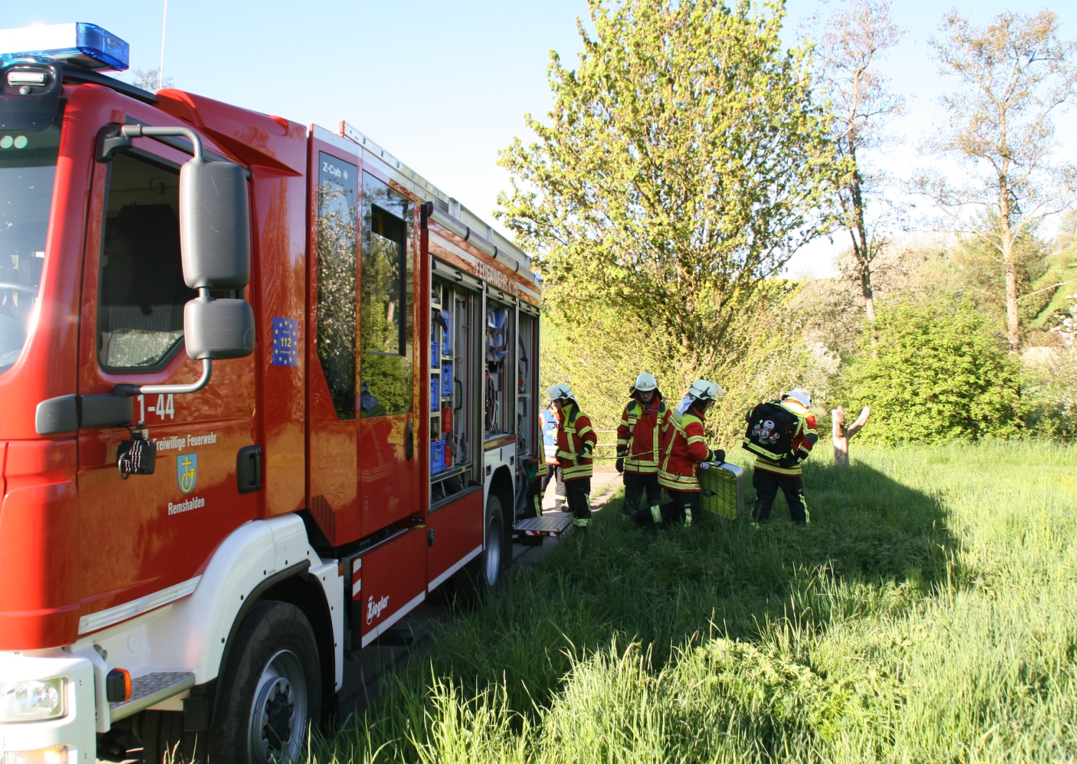 Am Samstag, den 25. April 2026, führte die Feuerwehr Remshalden eine Übung mit dem Ziel durch, die Wasserversorgung über eine lange Wegstrecke sicherzustellen.