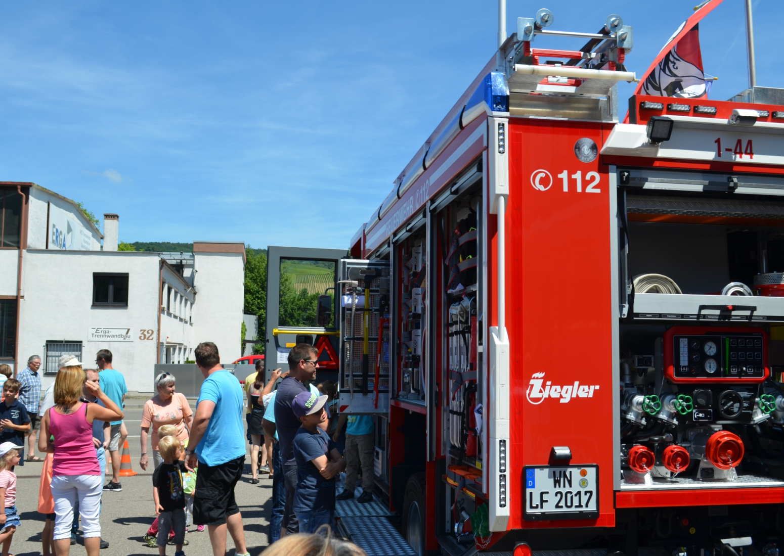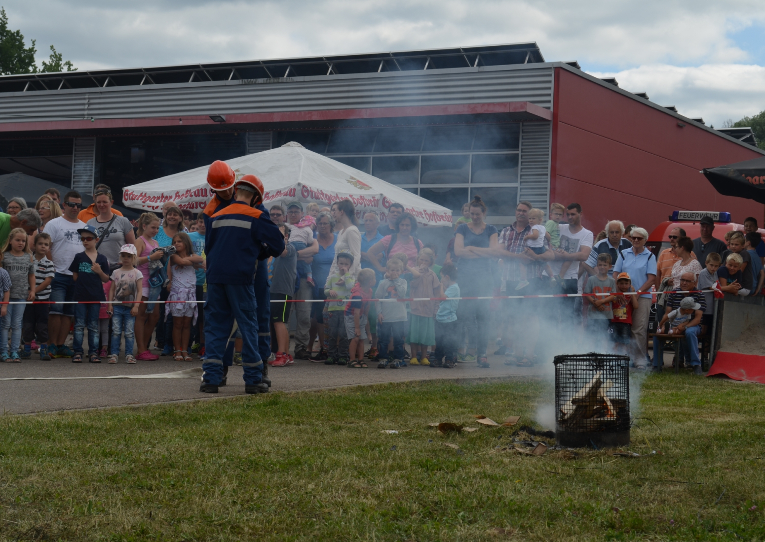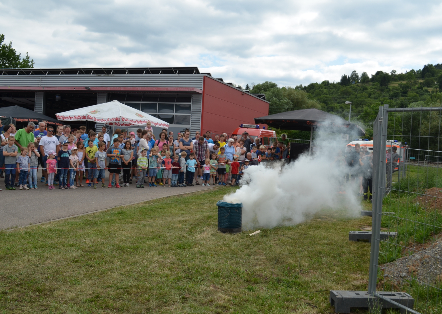 Bei Schnitzel, Maultaschen oder ganz klassisch einer Roten Wurst lud die Festatmosphäre zum Verweilen im Feuerwehrhaus ein. Oder man genoss die Sonnenstrahlen im Hof bei Stimmungsmusik. Zusätzlich gab es für Groß und Klein ein buntes Rahmenprogramm wie zum Beispiel die Schauübung der Jugendfeuerwehr, die Spielstraße oder eine Hüpfburg, sowie die beleibten Rundfahrten mit dem Feuerwehrauto.
