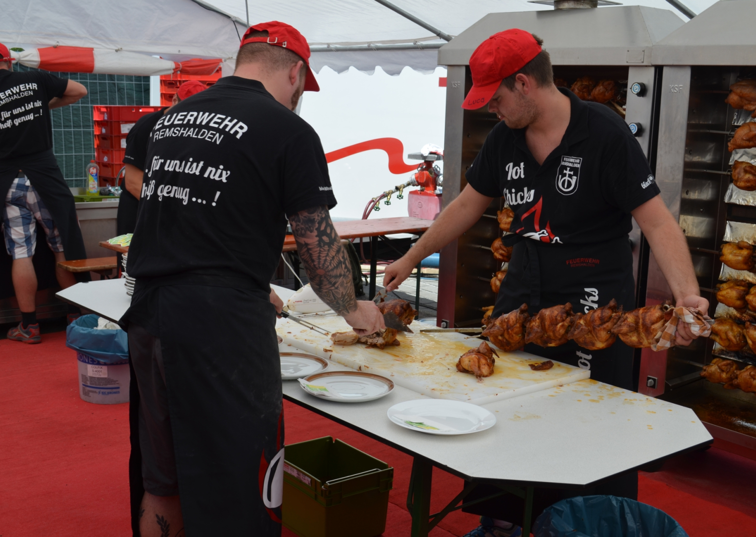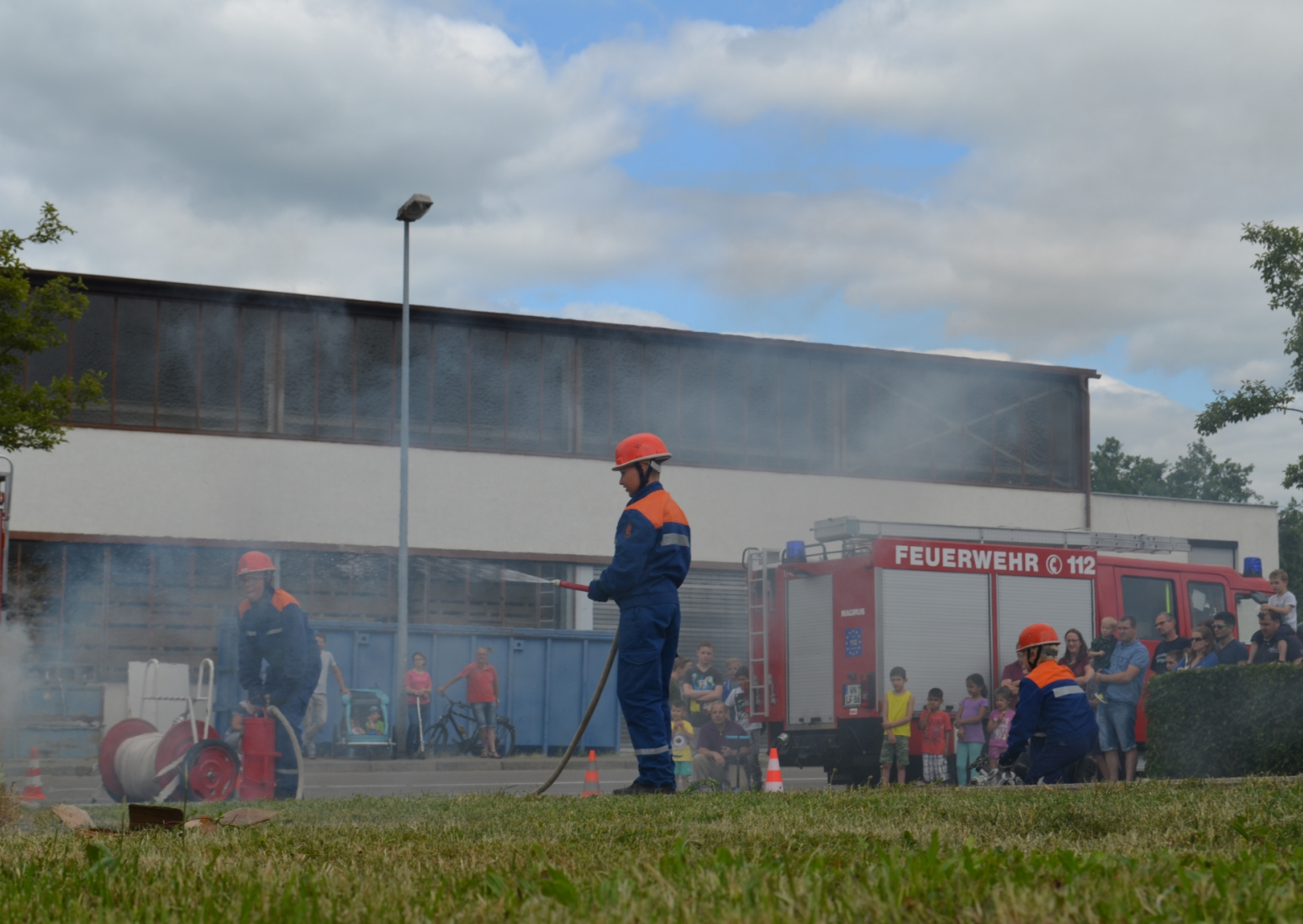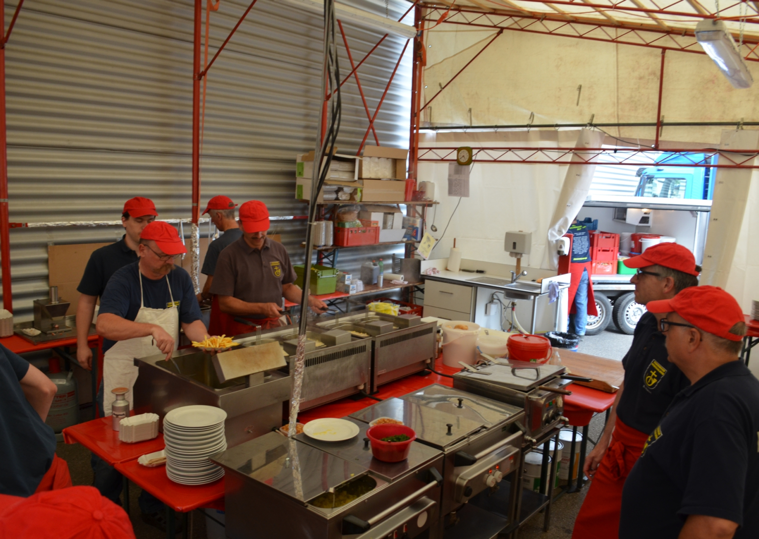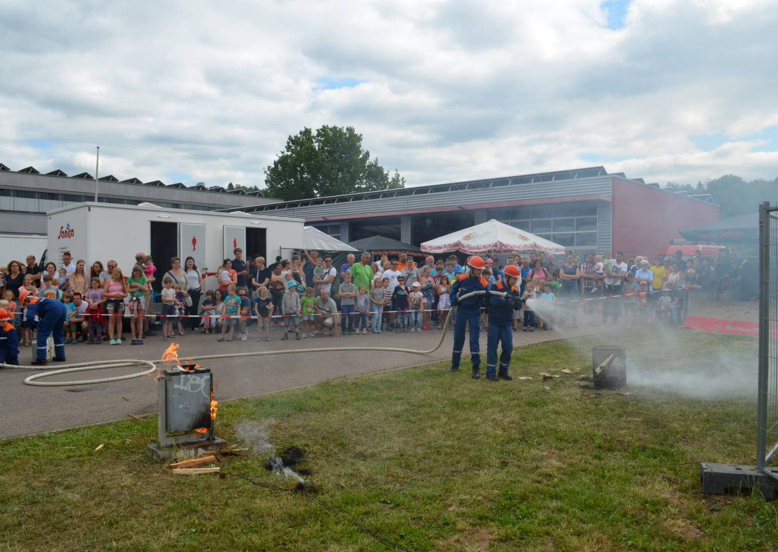 Bei Schnitzel, Maultaschen oder ganz klassisch einer Roten Wurst lud die Festatmosphäre zum Verweilen im Feuerwehrhaus ein. Oder man genoss die Sonnenstrahlen im Hof bei Stimmungsmusik. Zusätzlich gab es für Groß und Klein ein buntes Rahmenprogramm wie zum Beispiel die Schauübung der Jugendfeuerwehr, die Spielstraße oder eine Hüpfburg, sowie die beleibten Rundfahrten mit dem Feuerwehrauto.