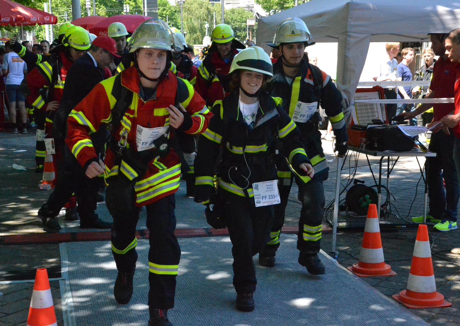Mit unangeschlossenem Atemschutzgerät ereichten 3 Manschaften das Ziel darunter Fabian Fischer mit einer Zeit von 15:00 Minuten.