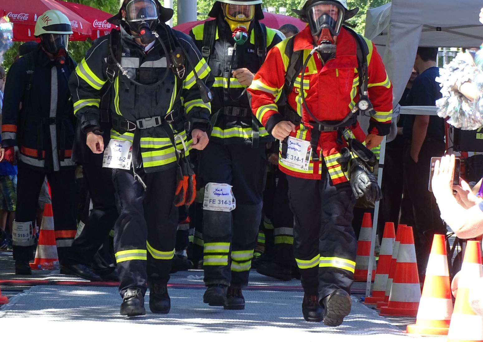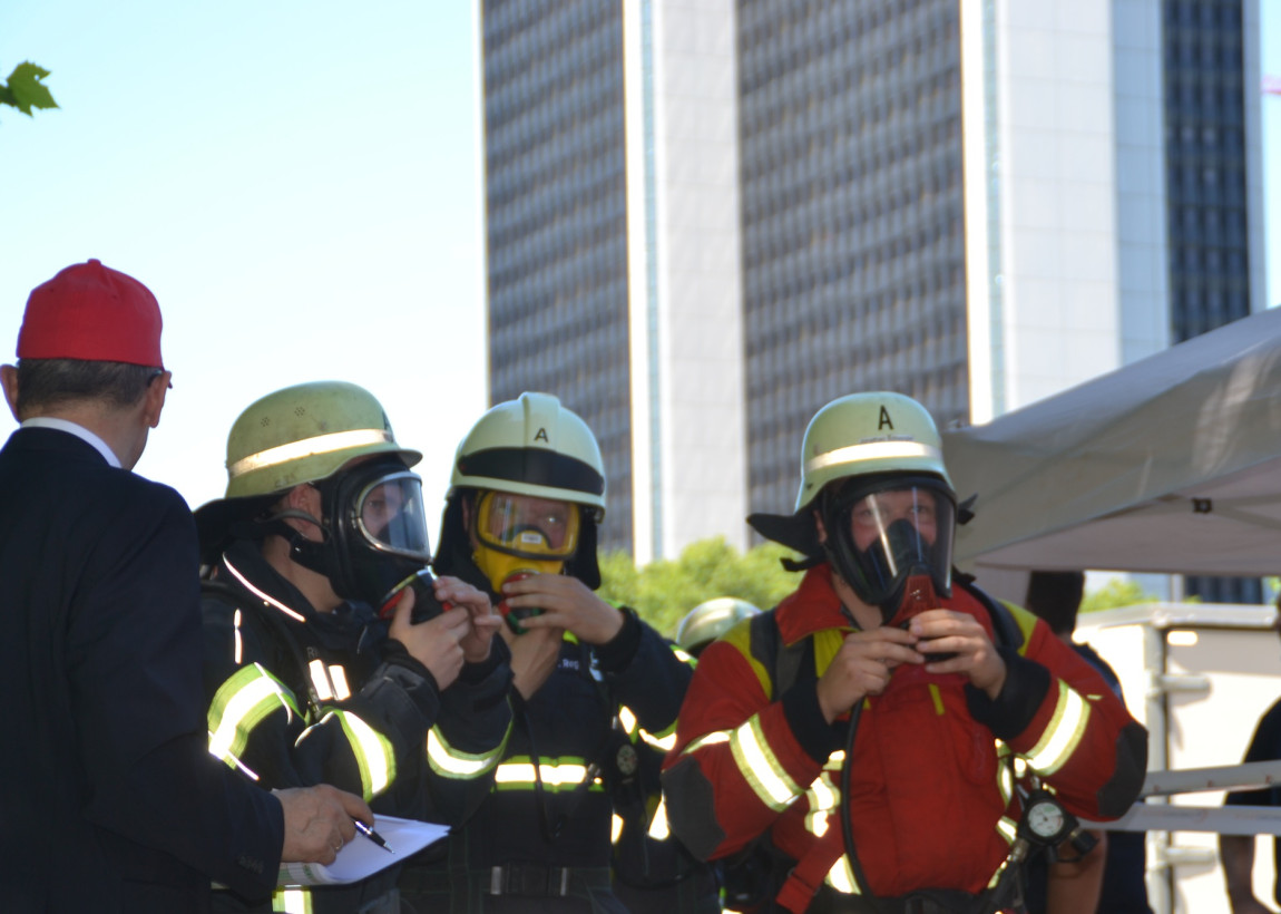 Voraussetzung war den Turm mit kompletter Feuerwehrschutzausrüstung einschließlich Atemschutzgerät auf dem Rücken zu bezwingen.