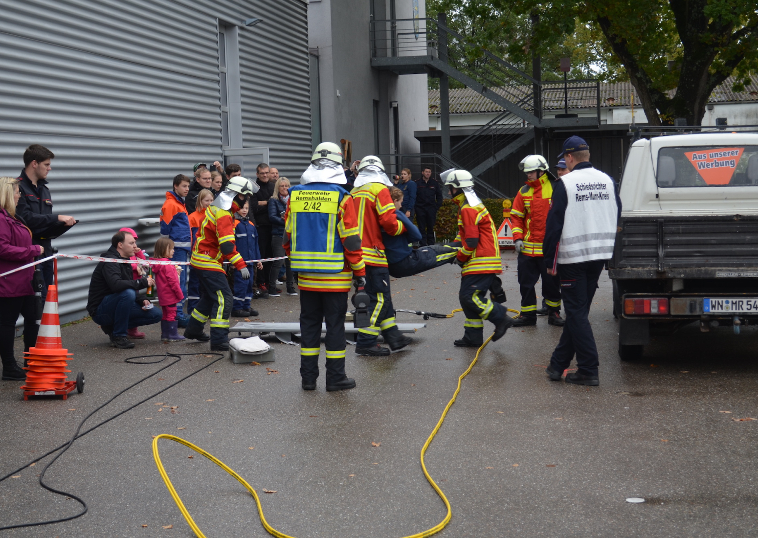 14 Gruppen aus dem Rems-Murr Kreis und sogar aus den Nachbarlandkreisen zeigten an diesem Samstag unter den Augen der Schiedsrichter und zahlreichen Zuschauern ihr Können. Mit dabei waren auch drei Gruppen aus Remshalden. Bei ihrem „Heimspiel“ zeigten eine Gold- und zwei Silbermannschaften eine souveräne Leistung. Monatelang wurde dazu das Anlegen von Atemschutz, das Kuppeln von Saugschläuchen und das Öffnen von Autotüren mit hydraulischem Rettungsgerät geübt. Zusätzlich musste noch für die Stufe „Gold“ für einen Theorietest gelernt werden.