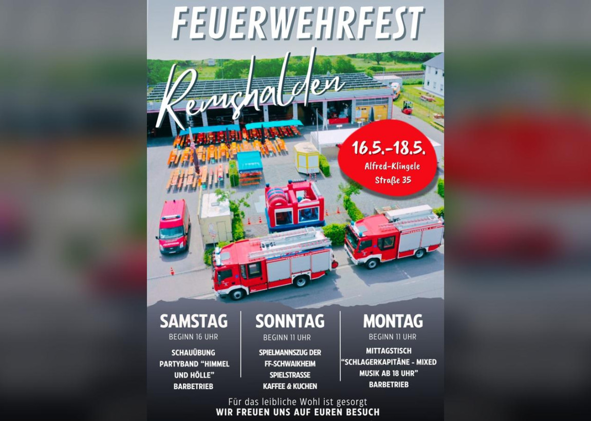 Bald ist es so weit: Das traditionelle Fest der Freiwilligen Feuerwehr Remshalden rund um das Feuerwehrhaus in der Alfred-Klingele-Straße startet wieder. Drei Tage lang heißt es dann: gute Unterhaltung, ein buntes Rahmenprogramm und leckeres Essen in gemütlich-familiärer Atmosphäre. Zur Eröffnung am Samstag, 16. Mai, um 16 Uhr geht es traditionell mit einer Schauübung los.