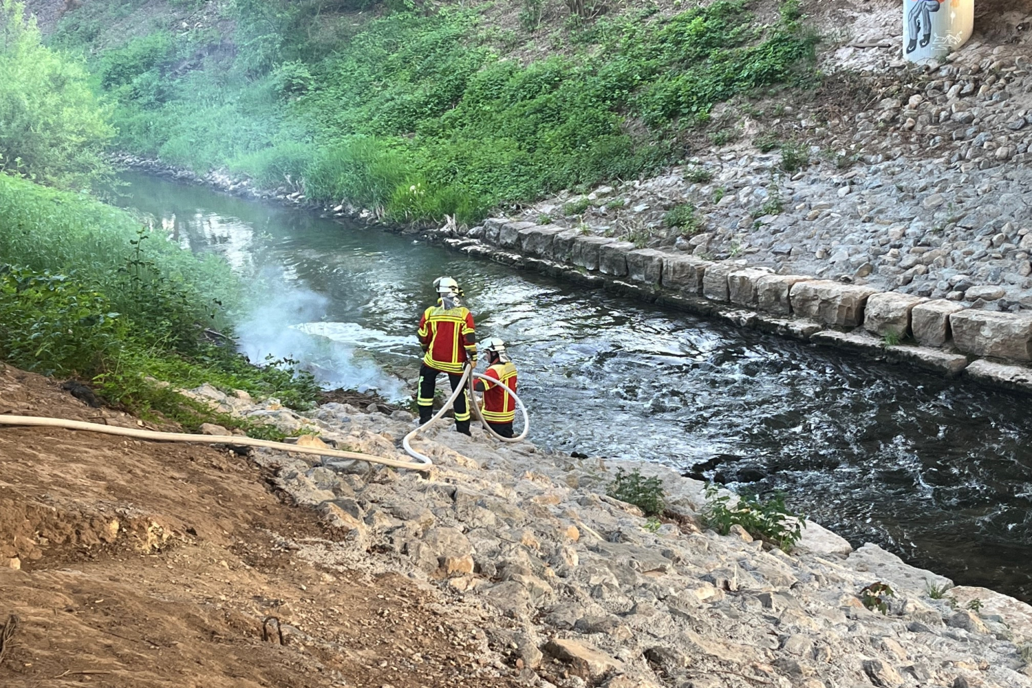 Die Freiwillige Feuerwehr Remshalden wurde zu einem Flächenbrand alarmiert. Vor Ort brannten Schilf und Gras im Böschungsbereich. Diese wurden mit einem C-Rohr abgelöscht.