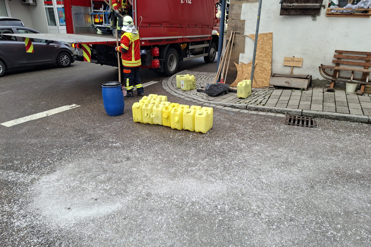 Die Feuerwehr verhinderte das Einlaufen in die Kanalisation und band das Öl. Anschließend wurde die Einsatzstelle dem Bauhof übergeben.